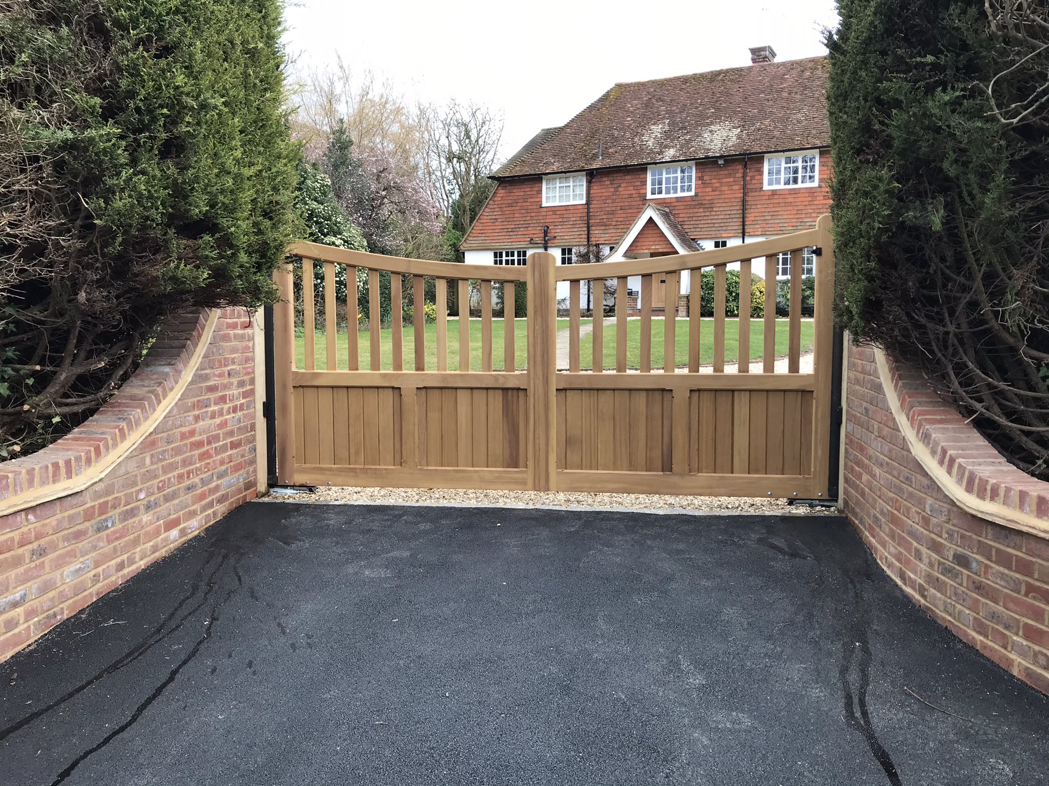 Bank House Gates On Twitter New Gateway Posts Walls And Driveway With Iroko Hardwood Gates And Frog A24e Motor System And Gsm Intercom And Keypad Timed Entry Sensor And Trades Button Free